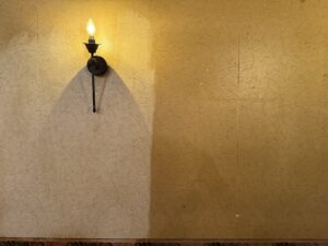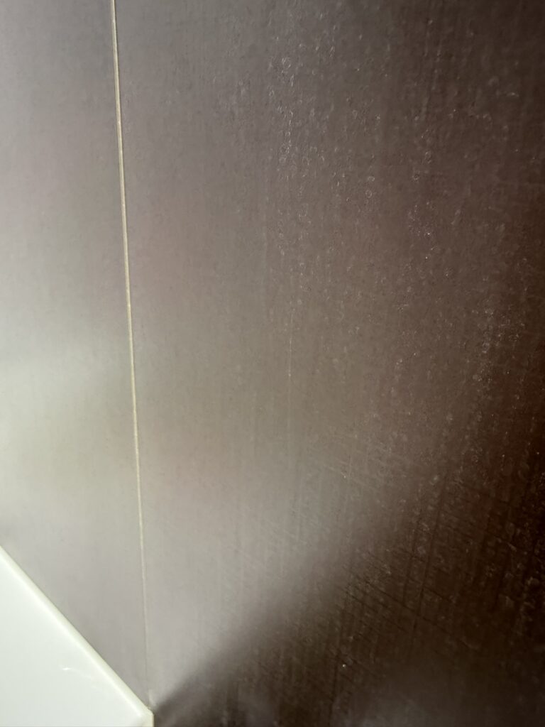 浴室壁面に付着したシリカスケール